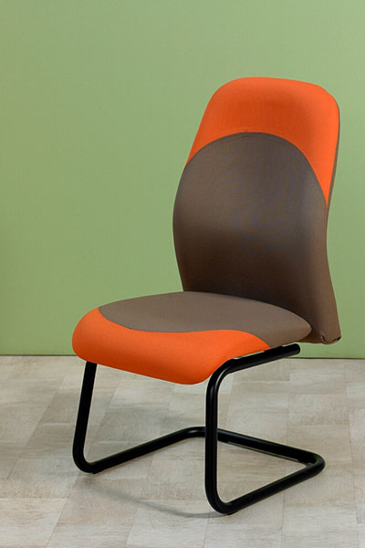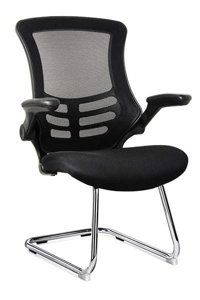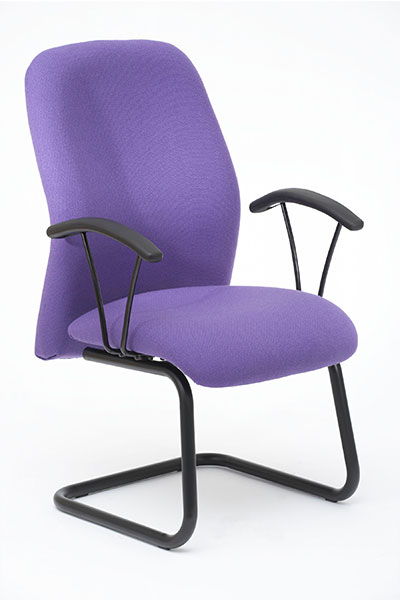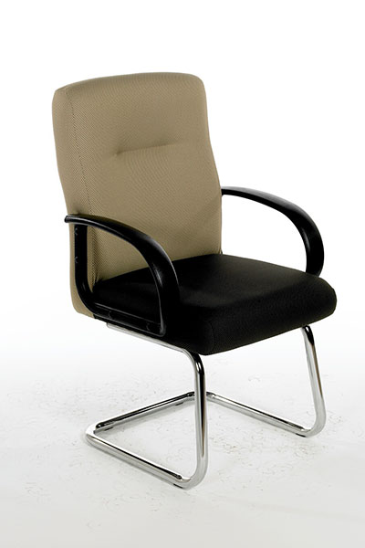 Stylish medium back conference chair upholstered arm pads and chrome cantilever.