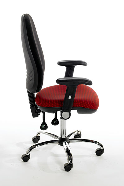 Executive High Back Mesh Chair with Faux Leather Arms, Nylon Base, Butterfly Seat Tilt with Tension Control and 90 degree adjustable arms, chrome base and headrest.